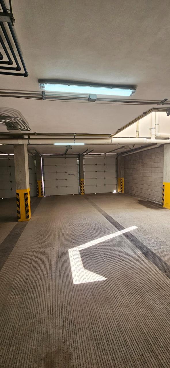 Edificio con área social con asador, cochera para un auto con portón eléctrico.